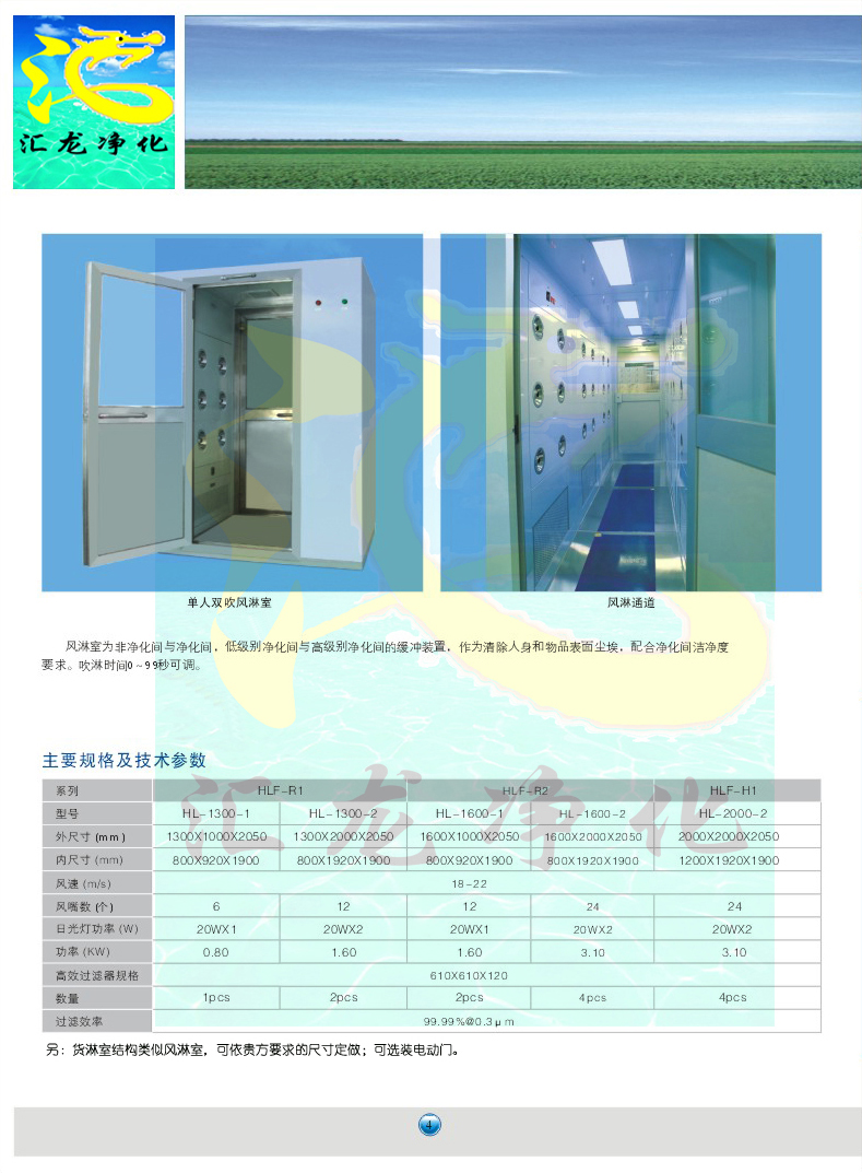 特点:模块化设计方便运输和安装。箱体优质冷板制作,外表静电喷塑处理。自动化吹淋系统双门采用电子互锁。不锈钢喷嘴360o可旋转,可测风速18m/s.风淋时间10-99秒可调,并显示已吹淋时间。采用初高效两级过滤系统。采用EVA密封材料,密封性能好。